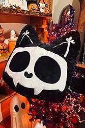 - Couch potato. Gothic Throw Pillow. 3D Cat Shape. White Skeleton Bones. Deluxe Faux Black Fur. Lovingly Embroidered. Large Size. Super Soft & Squishy. VampireFreaks Branded Tag. 15" W x 15" H x 7.5" D. Made of Polyester.