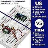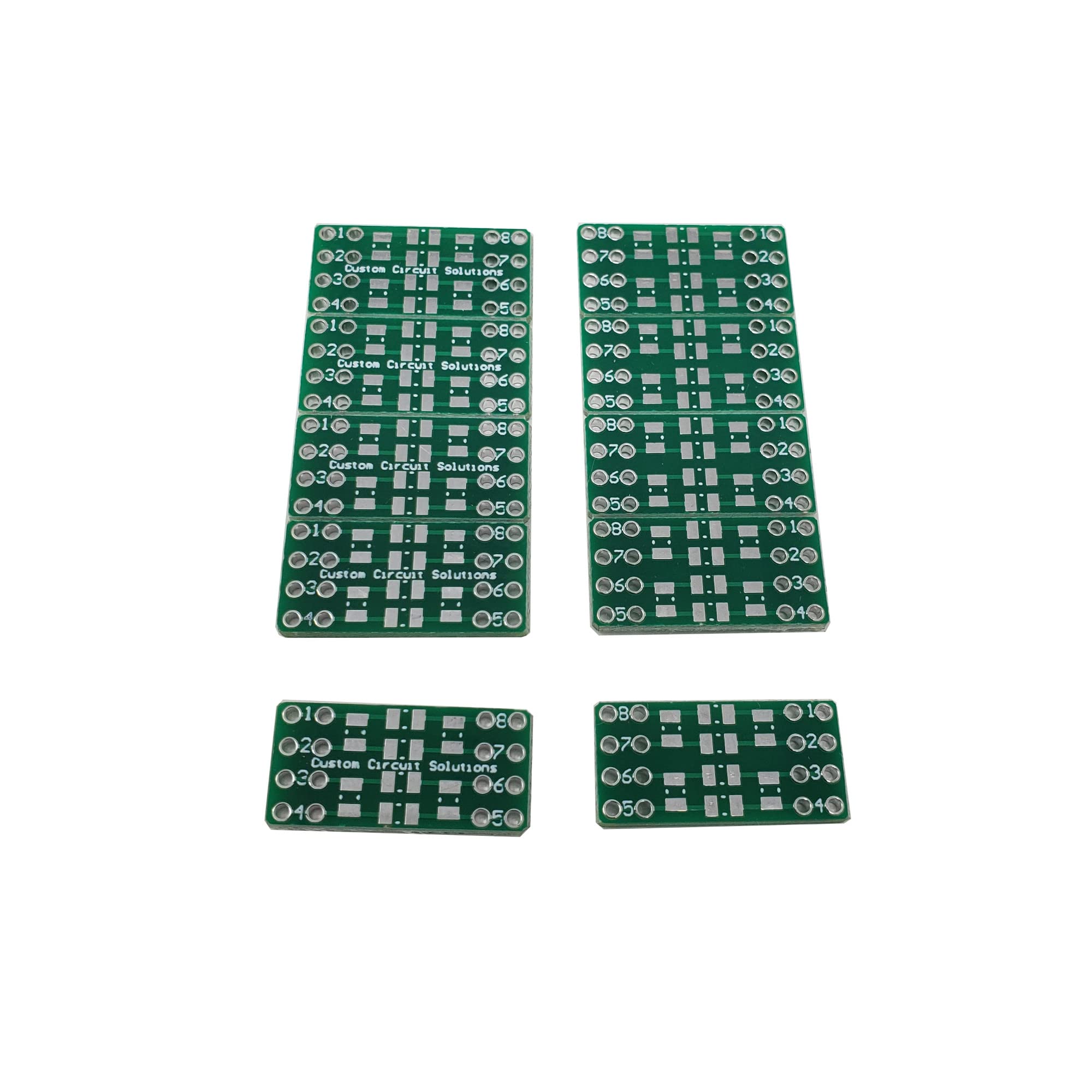 - Custom Circuit Solution’s SMT to DIP solderable breadboard prototype modules are much more than a traditional SMT breakout PCB. They offer many benefits including flexible mounting options with dual rows of solderable holes, the ability to incorporate passive devices directly on board (such as 0603/0805 footprint passive components), as well as oversized pads to simplify hand soldering. By incorporating most or all of the circuit’s components directly onboard, you not only make the circuit reusable, it also becomes more reliable, and the signal quality is vastly improved with the minimized lead parasitics when compare to through hole passives plugged into a solderless breadboard. Alternative sized versions are available if necessary. This SMD header can mount directly to standard breadboards or can be wire jumped directly to other circuits. These devices are beneficial for professional engineers and home hobbyists alike. Stock your makerspace lab with these today.