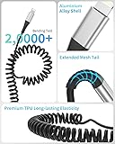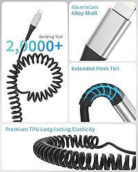【Coiled Lightning Cable For Car】The Lightning to USB C Cable 3 Feet features a retractable spring-loaded design with excellent stretch and toughness. It can extend up to 3 Feet, providing enough length for various scenarios such as in-car use, travel, home, office, cycling, and using with power banks. While not in use, it retracts to a compact 1FT length, making it easy to carry and keep your surroundings tidy. 【Easy Carplay Connection】This Type C to Lightning Cable with [MFi Certified] to ensure perfect compatibility with your Lightning device without triggering any pop-up warnings. It connects seamlessly to CarPlay, allowing you to charge and navigate at the same time. The connection is stable, so you don't have to worry about disconnections while driving on bumpy roads. 【Fast Charging & Data Sync】USB C to iPhone fast charging cable has a built-in MFI-certified chip that delivers transmission speeds up to 480Mb/s and 3A fast charging. It ensures a smooth and safe user experience. Whether you need to charge your iPhone or transfer files, this cable ensures efficient power transfer and reliable data synchronisation. 【Superior Durability】Coiled Lightning Cable is made of aluminium alloy shell and high-quality TPU material, with reinforced joints, and has gone through 15,000 bending experiments and impact tests, proving that it is stronger and more wear-resistant than ordinary iPhone charger data cables. It has a super long service life and can serve you for a long time. 【Wide Compatibility】The Lightning USB-C Cable is Apple MFI certified and 100% supports to connect carplay. It compatible with all Apple models including iPhone 14, 13, 12, 11 Pro Max, iPhone 13, 12, 11, Xs, Xr, X, SE, 8/7/6/5 , iPad Air, Mini, AirPods Pro and other Lightning interface devices 【What You Will Get】This package includes 2 Pack of Apple MFi Certified Coiled USBC to Lightning Charging Cables, providing you with convenient and reliable charging solutions for your iPhone. We offer a worry-free 24-month warranty, ensuring customer satisfaction and peace of mind.