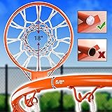 【IMPORTANT NOTICE】: If you are using this basketball rim to replace your original basketball rim on the basketbal hoop (will be installed on the backboard), please check the rim plate measurements on your backboard to ensure compatibility (Dimensions of our products:Left to right hole centre spacing approximately 10cm (3.94 inches) apart. Top to bottom hole centre spacing approximately 7cm (2.76 inches) apart. Plate size: 12.5cm x 11.2cm/ 4.92" x 4.41") 【Heavy Duty & Accessories included】heavy duty solid steel rim18 Inch diameter standard basketball rim, product weight: 8.5 lb. All weather durable solid nylon net with 12-loop and 4x expansion screws with 2 Springs included 【Long lasting material】Manufactured from all-weather, powder coated solid steel, this rim is made for durability and continual use. Designed for outdoor play 【Wide usages】 basketball rim for garage is sturdy and reliable for many usages, ideal for schools, public courts, garages, yards and so on, you can apply the rim according to your actual needs 【Shock absorber springs】 Solid steel 18 inch rim with two-spring action flex mechanism,which provides spring-back action and reduce pressure on the walls