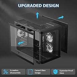 [Innovative Curved Glass Views] The curved design offers a sleek, modern aesthetic that stands out in any setup. The R angle transition is natural and elegant, experience the awe-inspiring 270° panoramic tempered glass panel on this computer case. Note: 𝐑𝐆𝐁 𝐇ub 𝐂ontroller not included. [Enhanced Cooling Efficiency] The Micro-ATX PC case supports up to 9 120mm fans and dual 360mm radiators, ensuring peak performance during intensive tasks, and airflow is optimized for maximum cooling. Keep your components cool even during intense gaming sessions. [Spacious Interior] This MATX gaming PC case boasts a spacious interior that can accommodate high-end components, including large GPUs (up to 4090) and multiple storage options. The versatile layout offers ample customization and expansion for gamers and professionals. [USB3.0 Port & Durable Materials] High-speed IO panel featuring a USB3.0 interface for fast data transfer and device compatibility. Crafted from premium materials for durability, this computer case ensures your components are well-protected. [Easy Installation] With its user-friendly design, this darkFlash PC case makes installation a breeze. Enjoy hassle-free cable management and quick access to your components, making upgrades and maintenance effortless.