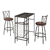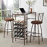 SonkYog 3-Piece Bar Stools Kitchen Dining Room Table Set with Shelves and Wine Storage,Ergonomic Cushioned Bar Stools,Brown