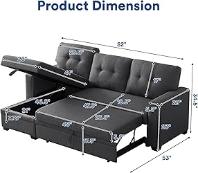 I𝗻𝘀𝘁a𝗻𝘁 T𝗿a𝗻𝘀𝗳𝗼𝗿𝗺a𝘁𝗶𝗼𝗻: A comfortable sofa during the day, and a spacious sleeper at night. With a simple pull-out action, the howcool sofa bed effortlessly expands into a cozy bed for guests or overnight stays. A𝗺𝗽𝗹𝗲 S𝘁𝗼𝗿a𝗴𝗲: Beneath the sofa chair, there is plenty of storage space, perfect for keeping bedding items. D𝘂𝗿a𝗯𝗹𝗲 D𝗲𝘀𝗶𝗴𝗻: High-density foam combined with coil springs provides ultimate comfort and support. The thick backrest makes you feel like you're wrapped in comfort, taking your comfort to a whole new level. B𝗿𝗲a𝘁𝗵a𝗯𝗹𝗲 L𝗶𝗻𝗲𝗻: howcool linen sofa sleeper is breathable and does not pill, ensuring a longer lifespan. Also has a soft touch, providing a comfortable and natural feeling. A𝘀𝘀𝗲𝗺𝗯𝗹𝘆: This Sectional sofa bed comes in three packages and requires 3 people to assemble in about 20 mins. It includes instructions and tools. If you have any questions, our professional service team is available to assist you within 12 hours.