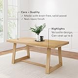 Quality Wood Dining Table: This farmhouse dining table features a tabletop with 3 solid wood panels and solid wood legs for a premium look and durability; Solid wood kitchen table features non-toxic finishes to complement your healthy living space Versatile Design: Farmhouse dining table for 6 can be used as a kitchen table and dinner table or as a large table for office or living room; Pair with our Farmhouse Dining Bench (sold separately) to create the perfect farmhouse dining table set Elegant Details: Our wood dining room table features a farmhouse design with clean lines and a textured, wirebrush finish that creates a beautiful setting for all your meals and family gatherings Easy Assembly: Dining table includes easy-to-read instructions, hardware and all the tools you need for a quick setup; Wooden dining table conveniently ships in one box Dimensions: Dining table measures 72” L x 36” W x 30” H