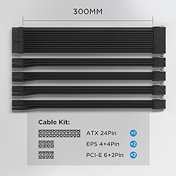 Generic PSU Cable Extension Kit 30CM Length with Cable Combs 1x24Pin/2x8Pin(4+4) EPS/2x8Pin(6P+2P) PCI-E/PC Sleeved Cable for ATX Power Supply (Black) (Black)