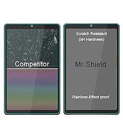 Include 2 PCS Screen Protector, Tailored-fit to your device's screen, Maximum Strength. From scratches to high impact drops, you are protected with Mr.Shield HD Clear Ballistic Glass. Surface hardness 9H - Highly durable, and scratch resistant. Precise laser cut tempered glass made with polished, rounded edges. 99.99% HD Clarity and Touchscreen Accuracy. 100% bubble free with high technology glues.