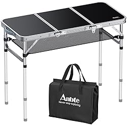 Anbte Folding Camping Table with Storage Net, 3ft Camping Table Aluminum Folding Table with 3 Adjustable Height Max 27.1 Inch Picnic Table Portable Table for Outdoor Backyard BBQ, Black