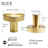 - Specification Package: 15Pcs Furniture Cabinet Knobs Material: Aluminum Alloy Color: Matte Black, Gold, Grey (Caesious), 3 color for your option Size: 29.9mm / 1.177 inch (top diameter); Height: 25mm / 0.98inch; Knob Base Width: 11mm / 0.43inch; Screws: 15Pcs M4*25mm/1inch, 15Pcs M4*45mm/1.77inch Break Away Screws Feature * High quality aluminum alloy and well package. * Dresser knobs with round design, very safety, won't hurt hands in use. * Each knobs with 2 sizes screws, enhances the convenience of the installation process. * DIY your home furniture, nice replacements for old knobs, give your cabinets a new looking! * KINDLY NOTE: Knobs surface may be slightly scratched due to friction in transit. If there are scratches, welcome to contact us to return or replace.