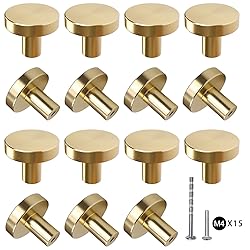 Cangder 15 Pack Kitchen Cabinet Knobs Round Knobs Dresser Drawer Knob Solid Cabinets Hardware Round Cabinets Door Knob Gold Drawer Pulls Handle Brushed Brass