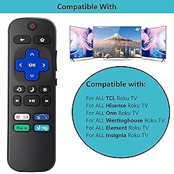 [Compatibility] New Replacement Remote Compatible for TCL Roku/Hisense Roku/Onn Roku/Insignia Roku/Element Roku/Westinghouse Roku/Hitachi Roku TV, with Buttons for Netflix, Disney+, Hulu, Sling [Important Notes] Please note that it DOES NOT work with Roku Stick And Not for Roku Box,Not for Roku Express, Not for Roku Ultra And Roku Premiere, Not for Roku streaming media players. Infrared remote control without voice function This Remote features shortcut buttons for Netflix, Disney+, Hulu,and Sling for extra convenience.You can quickly Jump to the APPS that you want. No programming or setup is required. Just Insert 2pcs*AAA 1.5V batteries to get it work (Note: batteries and manual are not included) We maintain a high standard of excellence and strive for 100% customer satisfaction.