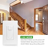 【 No Neutral/Ground Wire Required】: Motion sensor wall switch very simple and universal installation method with hot and load wires,No neutral wire required; operable without a ground wire connection.You don't need to pay an electrician or guess which wire leads to where 【2 PACK】The switch usesadvanced passive infrared sensor (PlR) and MCU control technology forbetter stability than traditional motion sensors. Adjusting the time delay.detection range, light sensor value, and operating mode (Occupancy /Vacancy/On-Off) is easy and accurate Incandescent/Halogen:550W/120VAC Min.3w LED:300W/120VAC Min.3w800W/220VAC Min.3W 【UL Certificated】: Save on your energy by making sure unused lights are always turned OFF with the motion sensor switch. Never leave a light on by mistake again.FC Fireproof material and UL Certificated.