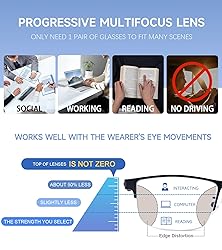 [CLEAR VISUAL EFFECTS AND GREAT CONVENIENCE]: Designed for prolonged exposure to computer monitors or screens, desks, or other spaces approximately 3 ft apart, providing excellent visual clarity and comfort; Away from the inconvenience of constantly taking off your glasses while working, reading, writing, or communicating [DELICATE TR90 TEMPLES AND METAL FRAME]: Our proprietary TR90 temples and metal front frame ensure they are never easily damaged, providing outstanding durability and comfort while being 50% lighter than congeneric products [SUPERIOR HIGH TRANSMITTANCE AND BLUE ANTI-LIGHT TECHNOLOGY]: FSA and HSA Approved, and is clearer and more durable than other lenses; Prescription quality anti-scratch lenses use high light transmission technology and anti-blue light coating to to reduce screen glare, relieve eye fatigue/dryness when using mobile phones, computers or tablets, and indirectly improve sleep quality [EASY-CONTOUR FIT AND COMFORTABLE HALF-FRAME READING GLASSES]: Simple half-frame design and high-quality silicone nose pads ensure maximum comfort; Combining an iconic vintage look with modern glamour, these half-frame reading glasses are perfect for those who are understated, confident and have impeccable taste [2 PACK for GREAT VALUE]: The perfect choice for Dad and Husband, each set includes Progressive Reader ×2, Protective Bags×2, Microfiber Cloth×1, Eyeglasses strap×1. Everything you need to maintain clarity, comfort, and organization—To prevent scratches and ensure longevity, we recommend storing your glasses in the included genuine leather bag when not in use