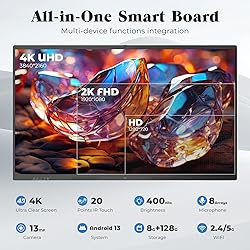- JASZDOT Smart Board, 4K UHD Interactive Touchscreen Whiteboard, Android13 Wireless Smartboard for Classroom Home Office Studio
