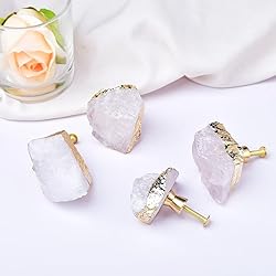 Crystal Stone Knobs Size - Set of 4, the diameter of irregular shaped crystal is 1.3"(35mm)-1.7"(45mm), Height 1.0"(25mm)-1.3"(35mm), great size for bedside tables, kitchen cabinets, kitchen drawers, dressing tables etc. Easy to install - Come with 2 different size screws 1.0"(25mm) and 1.3"(35mm) for easy installation, you can choose suitable length according to your drawer or cupboard. 100% Natural Crystal Knobs - handmade healing crystal knobs, they are the great decoration for your home, suitable for any room style. Crystal's peculiar ice-cold touch, comfortable and wonderful touch when hold in hand. Unique Style: Our crystal stone knobs are made of natural crystal stone with metal alloy, durable and elegant, it is an ideal way to beautify an entire room. Satisfaction Guarantee:All of our products come with No Questions Asked Guarantee. If you are not satisfied with our product, please contact us, we will be happy to provide a replacement or refund