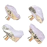 FZBHRO White Crystal Stone Cabinet Knobs Geode Drawer Knobs Handles Decorative Gold Plated Gemstone Cupboard Pulls for Home Office Decor 4 Pack