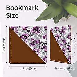 AFYEWKC Cute Leather Bookmarks, Fun Triangle Making Corner Bookmark, Book Accessories for Reading Book Lovers, Unbreakable Page Markers for Women Men Cool Skull Flowers