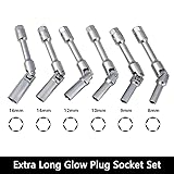 DPTOOL 6pcs 3/8" Drive Extra Long Glow Plug Socket Set, 180 Degree Universal Joint Swivel Spark Plug Socket Set, 6 Point Glow Plug Removal and Installation Tool 8mm 9mnm 10mm 12mm 14mm 16mm