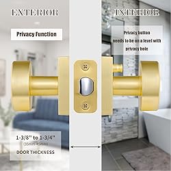 【Privacy Function】Modern gold door handle with push button lock, this privacy door knobs are suitable for bedrooms, bathrooms or other interior doors where privacy and security are required. 【Fits Standard US Size Doors】Brass privacy door handles fits standard size doors from 1-3/8" (35 mm) to 1-3/4" (45 mm) thick. Comes with an adjustable latch for the backset 2-3/8" (60 mm) or 2-3/4" (70 mm). 【Easy To Install】Installation is quick and easy, includes all door knob hardware and instructions, and can be done in minutes by yourself. The doorknobs can be used on both the left and right handle interior door. 【Package Includes】Privacy door knob, Adjustable latch, Strike plate, Spindle, All the screws needed for installation and detailed instructions. Our square door knob features zinc alloy, Solid round knob heavy duty design, more sturdy than other cheap door knobs. 【120 Days No Reason Returns】NEWLIPLACE stores are committed to bringing our customers high quality door knobs, door handles and door locks. NEWLIPLACE will provide you with a refund or exchange if there are any quality issues within 120 days. 24-Hour customer service.