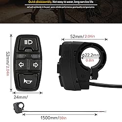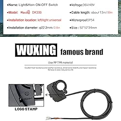 【3in1 Motorcycle Head light Switch】headlight and horn switch, ebike turn signal switch 3-in-1 Functions, Ebike Lamp and Horn Switch Motorcycle Horn Turn ON/Off Control Switches,for Electric Bike Scooter Motobike ATV Conversion. 【High Quality Front Light Switch】 Ebike Lamp and Horn Switch Made of Sturdy and Durable High-quality Material ABS to Ensure Maximum Strength and Durability, By Wuxing DK336,DK226,DK11 Electric Motorcycle Headlights Horn Turn ON/Off Control Switches Buttons. 【7/8inch(22mm) Tube Install Size】The Electric Scooter Turn Signal Switch Directly into The Motorcycle Handlebar Tube 7/8in and Then Tighten it With Screws, Electric Bicycle Mini Bike Headlight and Horn Switch Easy access and Comfortable Control And Bring You a Better Cycling Experience. 【The Light Button Wiring Introduce】The DK336 is 3-IN-1 Headlight Switch, Turn Signal Switch Control Button, and Horn Switch; The DK226 is the 2-IN1 ,Electric Bicycle Front Light Switch and Horn Buttons; The DK11 is 2in1 E-scooter Light and Horn Switch and All is Wuxing. 【Widely Use】Motorcycle Turn Signal Switch is Better for Most E Motorcycles, Electric Bike, Motorbikes, E Scooters, Go Kart , Mini Bike ATVs And More.