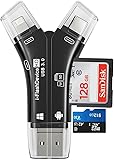 4-in-1 USB 3.0 SD/Micro SD Card Reader for iPhone, iPad, Android, Mac, Computer, Camera, Trail Camera Viewer, Portable Memory Card Reader Adapter for iPhone ipad Charge