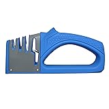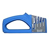 3-Stage Sharpening: This robust knife and scissor sharpener features a three-stage sharpening system—Tungsten, Ceramic, and Diamond for edge restoration, refinement, and a flawless finish. Perfect for restoring your favorite knives or shears Keep Scissors In Prime Condition: Equipped with an easy-to-use ceramic scissors sharpener slot, you can keep your scissors in peak cutting condition, ensuring effortless cuts every time. The knife sharpener is usable right or left handed Sharpening Made Comfortable: Featuring a large ergonomic handle with textured grip, these knife sharpeners provide optimal comfort and control when handling. This sharpener is perfect for handheld or countertop use Less Slips, More Sharpness: Take advantage of this ergonomic and stable sharpener's secure platform. With its sturdy non-slip base, our kitchen sharpener lets you confidently sharpen your knives and shears with incredible precision Effortless To Use: Sleek and compact, our knives sharpener is a breeze to use. Place the heel of the blade into the Tungsten groove and pull the knife through 2-3 times, refine with the Diamond groove and finish with the Ceramic groove
