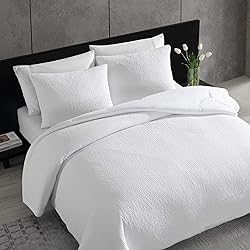 Vera Wang - Queen Comforter Set, Premium Cotton Bedding Set with Matching Shams, Chic Room Essentials, Oeko-Tex Certified (Puckered Texture White, Queen)