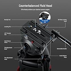 - The super stable heavy duty video tripod is a durable and reliable camera accessory, perfect for filming, video recording, and various events. With its metal construction, this camera tripod for camera offers exceptional stability and can support up to 17.6lb/8kg. The nonslip rubber feet provide stable support on any terrain, while the damped fluid head and dynamic counterbalance system ensure smooth and controlled movements. The tripod features quick height adjustment and easy portability, folding to a compact size of 0.63"/16mm. It offers versatile mounting compatibility with DSLR cameras, camcorders, and even phone holders or action camera adapters. The quick lock camera mount QR system allows for easy attachment and detachment of cameras, and the included L shaped hex key ensures tool free setup.SpecificationsModel: TP37Item Type: Fluid Head Video Tripod Compatibility: Compatible with Manfrotto 501Application: Filming & Video RecordingMain Features: Damped Head & Quick AdjustmentMounting Points: 1/4", 3/8"Main Material: All metalLoad Capacity: 17.6lb/8kgWeight: 8.9lb/4.04kgDimensions: 33"/84.5cm~74"/187cmFolded Size: 35"x6.3"x6.3"/89x16x16cmPackage Contents1 x Video Tripod with Fluid Head1 x L Shaped Hex Key