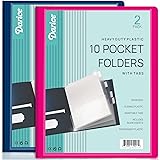 - Plastic Folders with Pockets Plastic Folders with Pockets: Simplify Document Organization Our plastic folder organizer provides a simple solution for efficiently organizing and storing your documents. With 8 double-sided transparent pockets and 2 interior cover pockets, these folders offer ample space to neatly store everything from important paperwork to projects, brochures, and more. Crafted from durable plastic, these folders are waterproof, tear-resistant, and built to safeguard your valuable documents. less Key Features: -Convenient pack of 2 folders. -8 double-sided transparent pockets and 2 interior cover pockets in each folder. -Customizable blank tab inserts for personalized labeling. -Facilitates effortless and efficient document organization. -Constructed from heavy-duty plastic for lasting use. -Waterproof and tear-resistant properties for document protection. -Designed to fit standard letter-size dimensions. -Perfect for home, office, school, and college use. Simplify your document organization with our plastic folders featuring pockets!