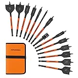 • Jorgensen 14-Piece Spade Drill Bit Set with Quick-Load Connector, High-Performance Carbon Steel Paddle Bits for Woodworking, Self-Feeding Threaded Tip, Assorted Bits 1/4" to 1-1/2" with Storage Pouch