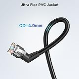 High-Performance Rotatable Ethernet Cable: The Cable Matters Cat 6 RJ45 Patch Cable with 360-degree rotatable connectors provides up to 10Gbps data transfer speeds, making it perfect for high-bandwidth applications, gaming, and streaming. Enjoy fast and stable connections without compromising on speed. 360-Degree Rotatable RJ45 Connectors: Both ends feature rotatable RJ45 connectors, allowing flexible installation in tight spaces. Ideal for setting up network connections in cramped locations, the cable’s design ensures easy and secure connections to network devices without strain on the cable. Ultra Flex PVC Jacket: Engineered with an Ultra Flex PVC jacket, this Cat 6 right-angle cable offers exceptional durability and flexibility. The jacket helps prevent kinks and tangling, making it easier to route the cable around obstacles while maintaining the quality of the connection. Reliable 10Gbps Bandwidth: Cat 6 cable supports data transmission up to 10 Gbps and a frequency of 550 MHz, ensuring high-speed network connectivity for gaming consoles, smart TVs, PCs, and more. It also fully supports Power over Ethernet (PoE), allowing you to power compatible devices directly through the cable—providing a future-proof solution for both data and power delivery in high-speed networks and multimedia applications. Ideal for Tight Spaces: The rotatable connectors make it an excellent choice for installations behind furniture, in server rooms, or around tight corners. This right-angle Cat 6 cable helps reduce strain on the connectors, enhancing the longevity of your network setup.