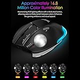 💻【Multi-functional Integrated Trackball Mouse】—— More powerful and reliable, recommended for office tasks, graphic design, and similar applications. Omni-directional Operating Experience —— The trackball allows for precise cursor micro-movements, offering a more effortless experience than traditional dragging. 💻【Semi-vertical Grip Design】—— This Tri-Mode Trackball Mouse Ergonomically crafted for a more relaxed grip posture. It ensures wrist protection and reduces fatigue during prolonged use. 💻【Aluminum Alloy Detachable Base】—— Aluminum alloy detachable base with a magnetic structure. Changing the angle requires only a gentle wrist pressure. Rubberized texture with detailed gradation markings ensures this computer mouse has a smooth but slip-free touch. 💻【NTC thermal protection for safe,】—— Enjoy continuous use with the rechargeable battery, saying goodbye to frequent battery depletion worries. Larger capacity means longer usage time, reducing the wireless mouse need for frequent replacements. Engineered with precision and featuring NTC thermal protection for safe, eco-friendly recharging. 💻【16.8 Million RGB Lighting Effects】—— The trackball mouse built-in Approximately 16.8 Million Color Illumination, Mesmerizing RGB lighting effects with a dedicated button, allowing users to freely switch between colors. Enhances the gaming ambiance and visual appeal.