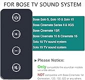 Compatible With Solo TV Sound System Speaker Model 410376, Solo 5 10 15 Sound Bar, Solo Cinemate Series II IIGS 1SR 10 & 15 NOTICE : NOT Compatible with Bose Cinemate 1st Generation, 120, 130, 520 or any others. 【Advanced Infrared Technology】:Strongest and stable signal by Infrared technology, Long transmission distance, 0.2s fast response, you can control your Sound System Speaker from multi-angle and without obstruction. 【High Quality】Made of High Quality ABS material, which is resistant to falling and has no peculiar smell, Built to Last for Long Lasting Use, and also keeps you and your children away from harm. 【Easy to use】:No programming or setting up required. Just insert batteries (Not included) to replace your original remote control perfectly. 【Premium After-sale】: We provide a 1 year warranty return service. If you have any questions about your order, please feel free to contact us directly and we will get back to you within 12 hours.