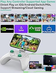 Multi-Platform Controller: Directy connection supported platforms: iPhone/iPad/Macbook, Android Phone/ Tablet, PC, Switch/Switch Lite/Switch Oled, PS3/PS4, Steam Deck; Remote play streaming supported platforms: PS4/PS5, Xbox One/Xbox Series, PC console; Also support most cloud gaming Apps on iOS/Android mobile or tablet, GeForce Now, Xbox Game Pass, Ama-zon Luna and more Upgraded 2-In-1 Hall Linear Trigger & Micro Triggers: Megadream Z03 game controller equips 2 kinds changable triggers, provide you with a smooth and precise control; The Micro trigger is instant triggers that eliminate trigger pull shaving millisecconds off your reaction time, it's more favorable in shooting games; The Hall linear trigger that never get stick drift and will be the perfect assistant to your flawless gaming performance, it is more popular in racing games ABXY Key Value Interchange Setting: The ABXY Key Value can be change from NS-Switch mode to Xbox mode, If you find that the ABXY buttons don't match what's shown in the game interface, you can press the 'Y' 'A' 'HOME' key of controller simultaneously to switch the ABXY key value from Switch mode layout to Xbox mode layout You Are the Top Player: This professional Android controller can set TURBO mode (auto and manual), which makes it easier for you to win in battle games; You can also tailor-make this wireless controller's back macro buttons to your heart's content, mapping the basic keys to the M1/M2 keys (M1/M2=A+B+X+Y+L+ZL+R+ZR+L3+R3+D-pad), a key combination, easy to hit a series of moves to kill the opponent Enhance The Game Atmosphere: This PC controller gamepad comes with dual haptic feedback and 4-level vibration intensity adjustment motors and sensitive 6-axis gyroscopic sensors to give you the best gaming experience; Only PC, PS3, PS4, NS-Switch supports vibration and 6-axis gyro; The iOS game controller comes with 600 mAh large capacity rechargeable battery, enables you playing the games more than 18 hours after full charge