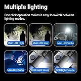 【Super Bright Flashlight with LED and COB】The main LED light of this mini flashlight uses 4 high powered LEDs as the light source, which can illuminate a concentrated area with a bright and stable beam that shines over a longer distance. On the side is the COB light, the COB light has a wide range and uniform light color, which can illuminate a larger area 【6 Light Modes】The main LED light of this small flashlight has 4 lighting modes, Low-High-Strobe-Super Bright. The side COB light has two lighting modes, Strong and Strobe. You can choose the corresponding lighting mode according to your usage environment 【Compact and Lightweight】Extreme lightweight and pocket size, the innovative use of ABS plastic in the case makes this compact flashlight extremely light and portable, weighing only 49 grams, the compact body can easily fit in your pocket, purse or backpack to every day carry or for emergency use 【USB C Rechargeable】This EDC flashlight is designed with a USB C charging port, it can be inserted into the charging port without regard to the front and back of the plug, which makes charging more convenient and easy. Powered by built-in rechargeable battery, the little flashlights can be fully charged in about 3~3.5 hours 【Strong Tail Magnet】This magnetic flashlight has a powerful magnet at the end, which allows it to attach itself very firmly to iron-containing materials. This frees up your hands to do other things 【Pocket Flashlight with Clip】This pocket flashlights can be easily attached to your hat, clothes or backpack, which makes the small flashlight multifunctional and more utility, it can be used for outdoor, camping, hunting, running, hiking, power outages, and more 【Soft Light Lampshade】The included lampshade in the package will soften the light emitted from the torch and illuminate a wider area so that you can use it as a camping light or a work light