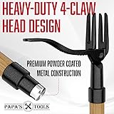 Papa's Tools Weeder - Stand Up Weed Puller Tool Made with Long Wooden Handle - Real Bamboo & 4-Claw Steel Head - Easily Remove Weeds Effortlessly Without The Need to Tug, Bend, Or Flex,