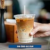 PERFECT OFFICE & PARTY PACK - The 12 oz disposable cup with flat lids and straws is transparent, allowing you to add bright colors to the drinks or desserts, making your party unique and colorful. The 12 oz plastic tumbler can be paired with any beverage color to make your party elegant and refined. [100 Pack] RESTAURANT QUALITY - The upgraded PET material makes these 12 oz plastic tumblers with flat lids and straws more durable and sturdy. Compared to hard plastic cups, PET cups are crack resistant, and the rolled rim is safe for your lips and fingers. Crystal clear, BPA free, no odor, freezer safe. CONVENIENT LIFESTYLE - The one-off design of these 12-ounce disposable plastic cups makes it easy to clean up after a busy dinner service. It is the perfect solution for elegance and convenient dining in any venue! Cut down on cleaning and dishwashing time and make life more comfortable. VERSATILE USES - These disposable clear cups provide exceptional clarity to the beverage inside so these plastic coffee cups will make your milkshakes, fruit shakes, iced latte, frappe, sodas, juices, flavored water, bubble tea, and other cold thick drinks more tantalizing to the eyes. MULTIPLE OCCASSIONS - These disposable plastic cups are perfect for wine whiskey cocktails and elite cups. Suitable for weddings, birthdays, thanksgiving, Halloween, and Christmas parties, family reunions, and other activities. This set contains 100 clear plastic cups for all guests.