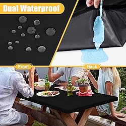 100% Polyester [Waterproof & Spillproof] Our picnic tablecloth designed with a waterproof surface and a TPU backing, creates a protective barrier that keeps liquids, sauces, and other spills contained on the table that keeps your table looking neat and clean. [Windproof & Non-Clip] This table cover is suitable for windy environments, so that your outdoor dining will not be disturbed. The elastic band design ensures that the lid is securely held in place and keeping it from blowing away. [Reusable & Tear-Proof] Made from premium materials, our waterproof tablecloth offers superior strength and do not tear, rips, and frays. Whether you're hosting a family meal, having a casual gathering, or using it for outdoor events will offering lasting protection and a touch of elegance to your dining area. [Machine Washable] Simply toss it in the washing machine for a refresh. Our outdoor table cover holds up well through multiple washes, retaining its vibrant color and soft texture, making it an ideal solution for busy households and event venues. [Classic & Versatile] The outdoor table cloth offer various colors and sizes to choose. Whether you’re hosting a dinner party, enjoying a family meal, or setting up for a festive occasion, this tablecloth making it a better choice for both relaxed family dinners and more elaborate gathering