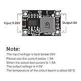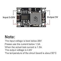 5V regulator input: 5V-28V, output: 5V, the maximum output current can reach 1.8A, when the output current is 1.5A, the output voltage is 4.6V This step-down power module providing power to specialized integrated circuits (ASIC), digital signal processors (DSP), microprocessors, memory units, field-programmable gate arrays (FPGA), and other digital or analog loads. Voltage regulator module ensures minimal power loss during the voltage step-down process.Experience optimal energy utilization and reduced heat generation, maximizing the efficiency of your power supply system. with a conversion efficiency of up to 96% Buck power supply module suitable for various scenarios, can be used in a wide range of applications, providing power to different types of specialized circuits or devices Enjoy the versatility and flexibility of powering multiple devices, ensuring efficient performance in diverse settings