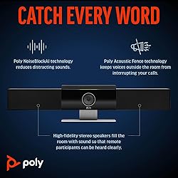 AI-POWERED MEETINGS: Create virtual meetings that feel in-person with Poly DirectorAI auto-framing and tracking technology. Prevent distracting noises from interrupting your meetings with NoiseBlockAI and Acoustic Fence technologies RICH, CLEAR AUDIO: With an advanced 6-microphone array for voice clarity and built-in stereo speakers, the Poly Studio enables teams on both ends to catch every word ULTRA HD 4K VIDEO: Enjoy 4K resolution, 120 degree field of view, and 5x digital zoom for a professional video experience PLUG AND PLAY: Get going fast – plug in the power, connect USB to your PC or Mac, launch your favorite conferencing platform, and you're ready to meet; no app installation necessary COMPATIBILITY: Certified with Zoom & Teams; works with nearly every PC or Mac video application