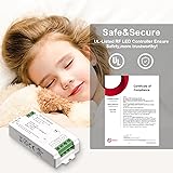 TUNICHX UL 2.4G RF LED Dimmer Controller Single Color Remote RF Controller Compatible with LM007, LM087, RC01RF, RC01RFB DC12V/DC24V Max 12A Indoor Use Only
