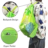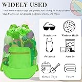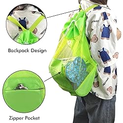 INVODA Mesh Beach Bag Drawstring Backpack - Foldable Lightweight Large Capacity, Adjustable Straps with Front Zipper Pocket, Multipurpose for Beach/Toy Storage/Gym/Swim (Green)