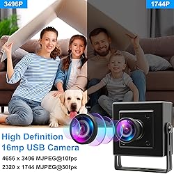 16Megapixel USB camera High Definition 4656*3496 resolution webcam with 1/2.8 inch IMX 298 color CMOS sensor is able to ensure your videos are always sharp and crystal clear. With Wide Angle 118degree low distortion Lens,wider angle of view, super small and mini size for lightburn laser engraver, compact lightburn laser camera for all kinds of machine vision. Just plug the USB cable into your PC’s USB port, plug and play, there is no need to download or install complicated driving software,OTG Support, can be connected to tablet, mobile phone, mini PC. High speed USB 2.0 interface USB webcam widely works with WinXP/Vista/Windows 7/8, Windows 10 Linux with UVC. Webcam for MAC, PC, desktop computer, laptop USB. Application:Suitable for document, passport, receipt, bar code,QR code scanning,highly recommended for a home surveillance system, monitoring 3D Printer,altimeter,3D scanner,etc.
