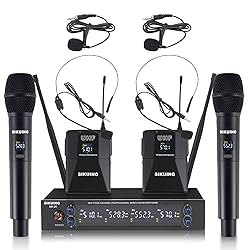 SIKUING 4 Channel UHF Wireless Microphone System with Lavalier Headset Mics, 4x50 Adjustable Frequencies, Ideal for Karaoke Meeting Church, 300ft Range (2 Handheld 2 Bodypack)
