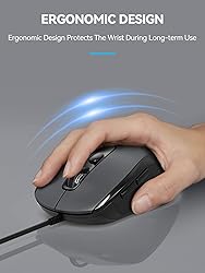 4 Adjustable DPI & Plug and Play: Wired computer mouse with 4 level adjustable DPI - 3600/2400/1800/1200, easily change the cursor sensitivity depending on your need; Plug and Play - No need for a driver, and you can plug and play the wired computer mouse directly Ergonomic Design: This computer mouse wired is ergonomically designed. The convex arc design imitates the shape of the hand when relaxing. The gravity of the palm acts on the computer mouse wired completely and evenly through a larger contact area, which can reduce the fatigue stress caused by long-term use. No Batteries & Stable Wired Connection: Just plug it to your computers and it's been working ever since. No need to install any others drivers or software in this usb mouse wired. The 5FT USB cable is the perfect length for an USB wired mouse for laptop and is long enough to accommodate almost all computer setups with no latency. Wide Compatibility: Works with Notebook, Computer, PC, Laptop, Chromebook with USB port, running on Windows11/ Win10/Win8.1/Win8/Win7/Vista/XP/2003/2000 etc. 6 High Efficient Buttons : There are not only click left and right buttons, but also a DPI adjusting button, scroll wheel and two side buttons. The function of the side buttons is to help you to back or forward when you surf the internet page with this wired mouse for laptop. Life Time Support: If you encounter any problems in using this wired mouse for laptop, please contact our professional customer service team, enjoying TECKNET 36 Months Warranty (Registered Only)