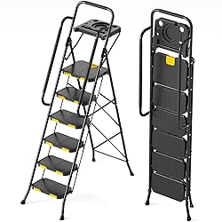 - KINGRACK 6 Step Ladder with Tool Platform, Folding Step Stool with Handrails, Sturdy Steel Ladder with Wide Pedal, 800 LBS Portable Safety Ladder for Painting Home Outdoor Garage