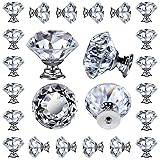 DEELF 24 Packs Kitchen Cabinet Knobs, 40 mm Crystal Cabinet Knobs, Diamond Dresser Handle Drawer Pulls, Dresser Knobs for Cabinets and Drawers, Silver Base