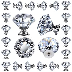 Complete Package: Each package includes these crystal knobs for cabinets and drawers with a diameter of 1-1/4", a base diameter of 3/4", and a height of 1-1/4". We also provide screws with these knobs, ensuring a perfect fit for your furniture. Elegant & Fashion: Made of high-quality crystal glass with a chrome base, these drawer pulls and knobs feature a polished chrome finish and a diamond shape. This combination adds a touch of sparkle and sophistication to any space. Easy Installation: Simply find the desired location, drill a hole, pass the screw through the back of the board, and tighten it to the knob. Installing these crystal knobs for drawers is a breeze with this simple process. Perfect Home & Office Decor: Each of these glass cabinet knobs measures 1-1/4" in diameter and height, making them ideal for cabinets, dressers, drawers, cupboards, wardrobes, and bookcases in your home or office. The artistic diamond shape and solid base of these cabinet door knobs provide a unique and elegant look, perfect for bedrooms, bathrooms, kitchens, and living rooms. Safety & Reliable: These diamond knobs for dressers are made from non-toxic materials, ensuring safety for your family. Be aware of low-quality leaded materials on the market.