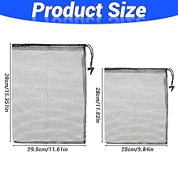 【What You Will Receive】You will get combination packaging of large and small mesh bags -two black golf ball bag.The large mesh ball bag measures 39x29.5cm/15.35x11.61in and the small bag measures 28x25cm/11.02x9.84in, which are the right size and quantity. 【High Quality Material】Our golf bag is made of high-quality nylon mesh material,which is lightweight and portable,sturdy and durable.Mesh ball bag can last for a long time use. 【Drawstring Cord Lock Design】This mesh drawstring bag with closure provides security that items won't spill out.Each multi-functional,draw string bag features a sliding drawstring closure and lock to conveniently keep everything tucked away until you need it. 【Breathable Mesh Design】Our ball bags mesh are soft and breathable,allowing air to flow through the bag,wet items to dry quickly without leaving an unpleasant odor,so you can easily to wash the dirty golf balls at the water by use it without make hand dirty. 【Wide Application】The mesh bags drawstring are ideal for gym,shower, washing toys,beach,travelling and more occasions,you can use it to store items that need to be organized or used when traveling,store fitness equipment,clothes,camping gear,hiking gear,etc.
