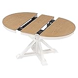 Farmhouse Extendable Dining Table for 6, Extendable Round Dining Table with a 12" Leaf, Wood Kitchen Dining Table for Dining Room Living Room Kitchen Apartment Small Space (Oak Natural+ Off White)