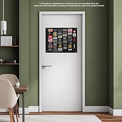 DIMENSIONS: Small 24" x 18" size. Made with sturdy materials to withstand regular use and handling. FREE PATCH & HANGING HOOKS: Includes (1) Yellow Border American Flag (3" x 2") and (4) adhesive hooks for hanging the patch board. EASY STORAGE: Simply remove the patch display from the wall and fold to store. No need to remove the patches from the patch wall. IDEAL FOR COLLECTORS: Perfect for displaying and organizing your collection of patches and emblems. Tactical patch display board holder allows you to showcase your military, army, combat morale uniform hook and loop emblems. **The patches displayed on the patch board in the photos are not included; they are shown for demonstration purposes only to illustrate the scale of the patch board.